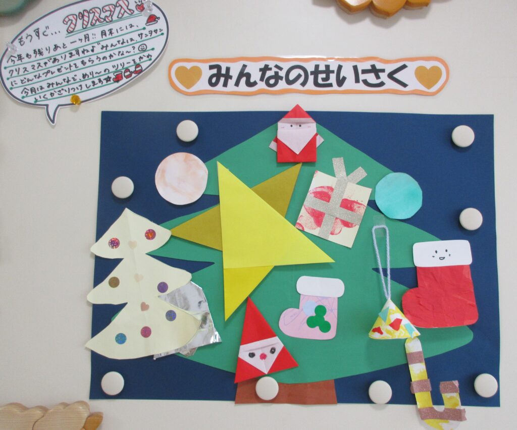 12月はお友だちと一緒にクリスマスツリーを飾り、クリスマスソングを歌ったり、クリスマスにちなんだ絵本を読んだり、クリスマス一色となりました🎄